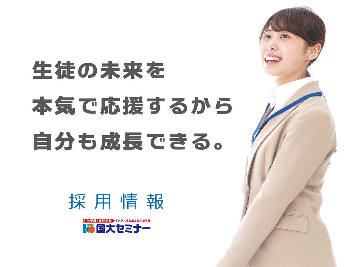 6人制グループ学習で生徒1人ひとりと向き合える国大セミナーの講師を募集中。未経験者も充実した研修でサポート。生徒の成長を実感しながら、コミュニケーション力やプレゼン力も身につく環境です。