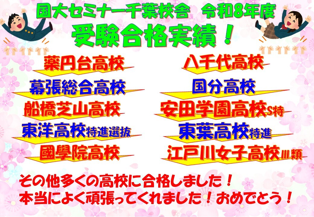 国大セミナー千葉校舎の本年度の合格実績が出そろいました!!