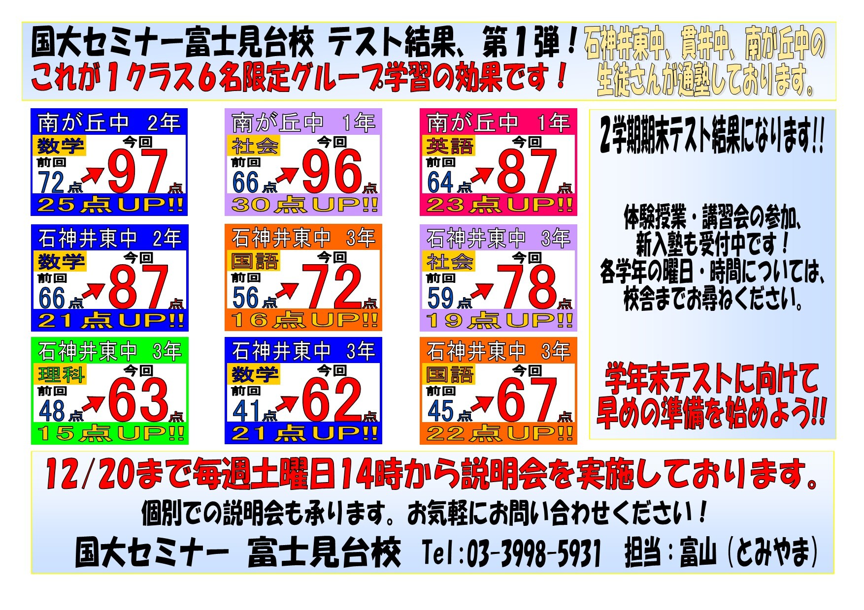 富士見台校、期末テスト結果 第2弾です!