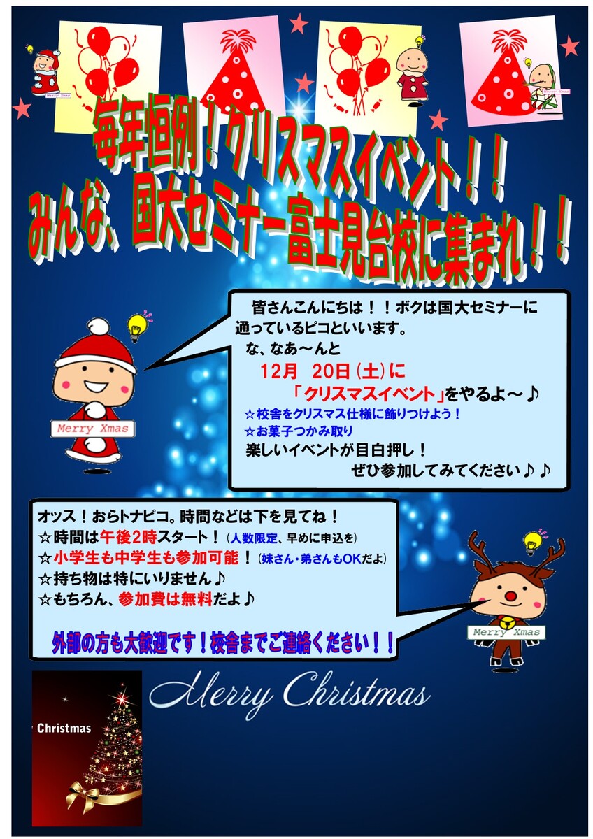 富士見台校では、12/20(土)14:00~クリスマス会を開催します!!