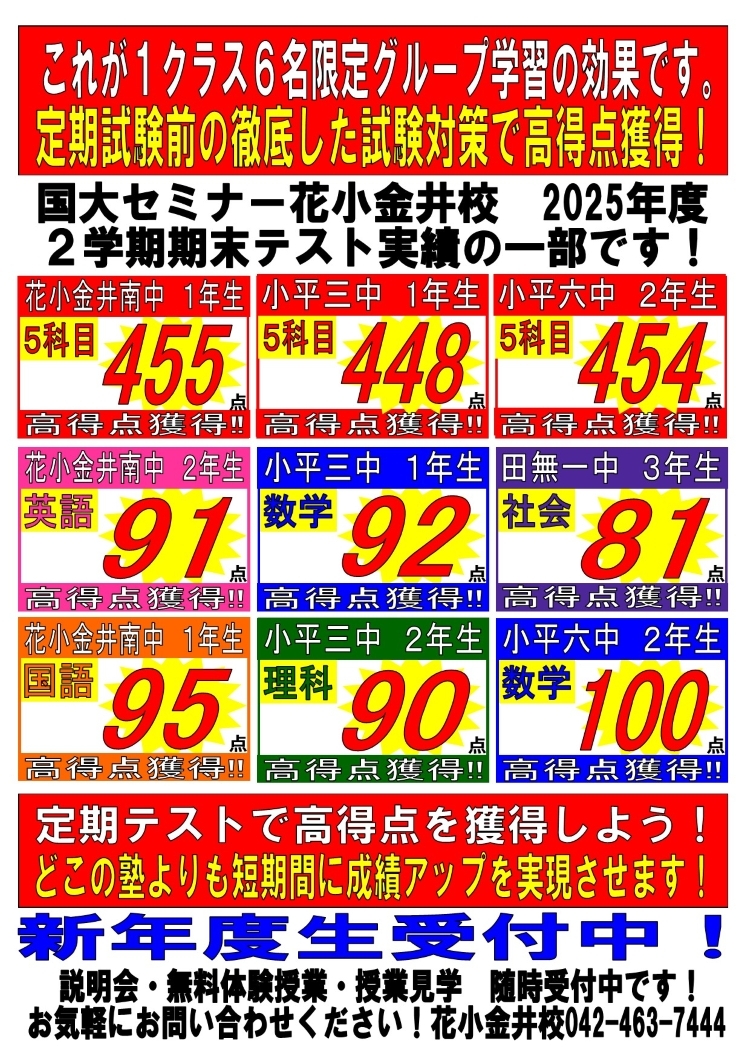 皆さんも国大セミナーで一緒に学年末試験対策を始めましょう!