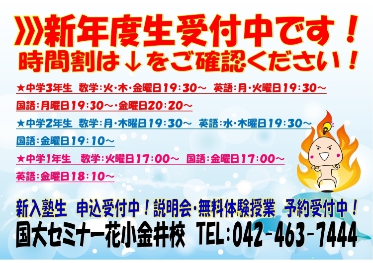 国大セミナーの新年度授業(学校先取り授業)開始まであと3週間ほどになりました。