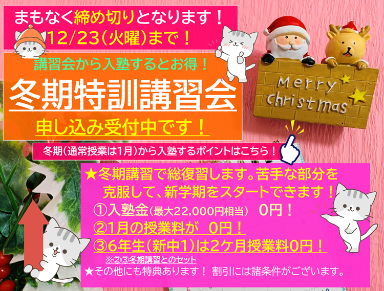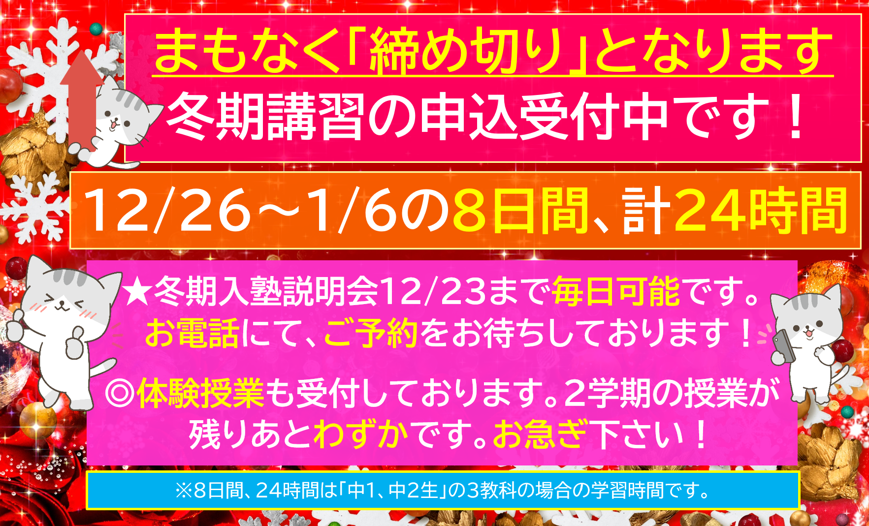 冬期講習のスタートまで、あと3営業日に迫りました。