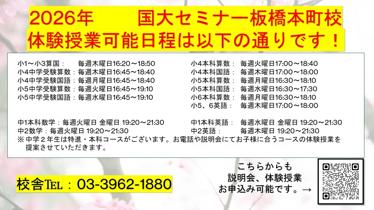 【国大セミナー板橋本町校】2026年体験授業 案内