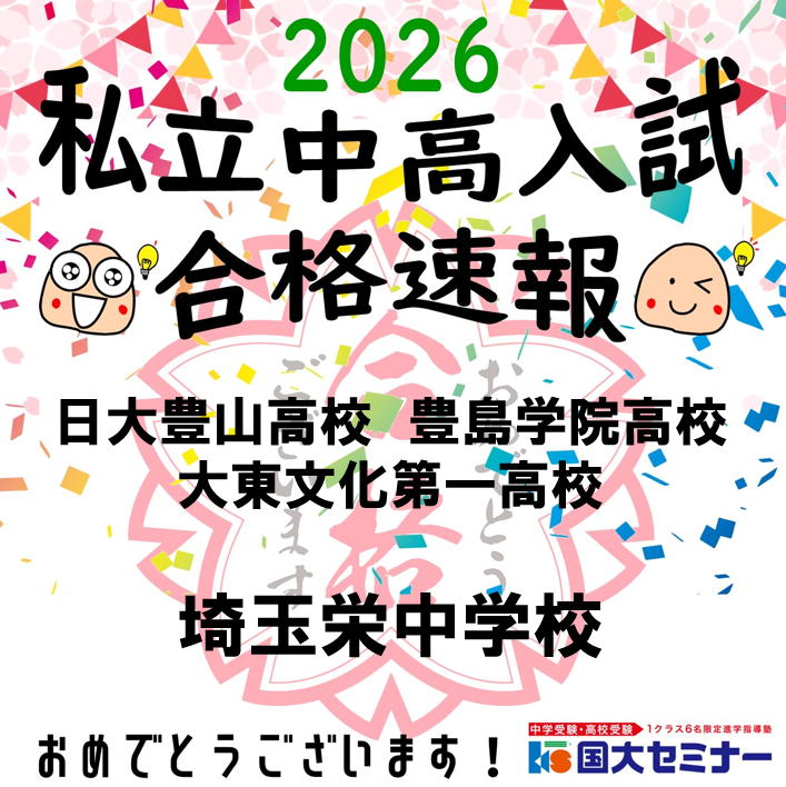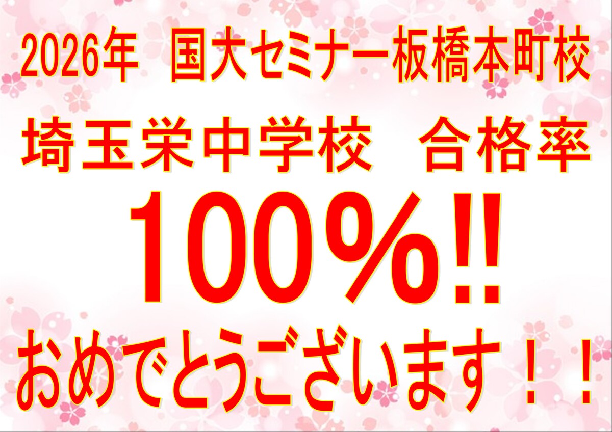 国大セミナー板橋本町校から埼玉栄中学校を受験した生徒は、全員合格(合格率100%) という結果を達成しました。
