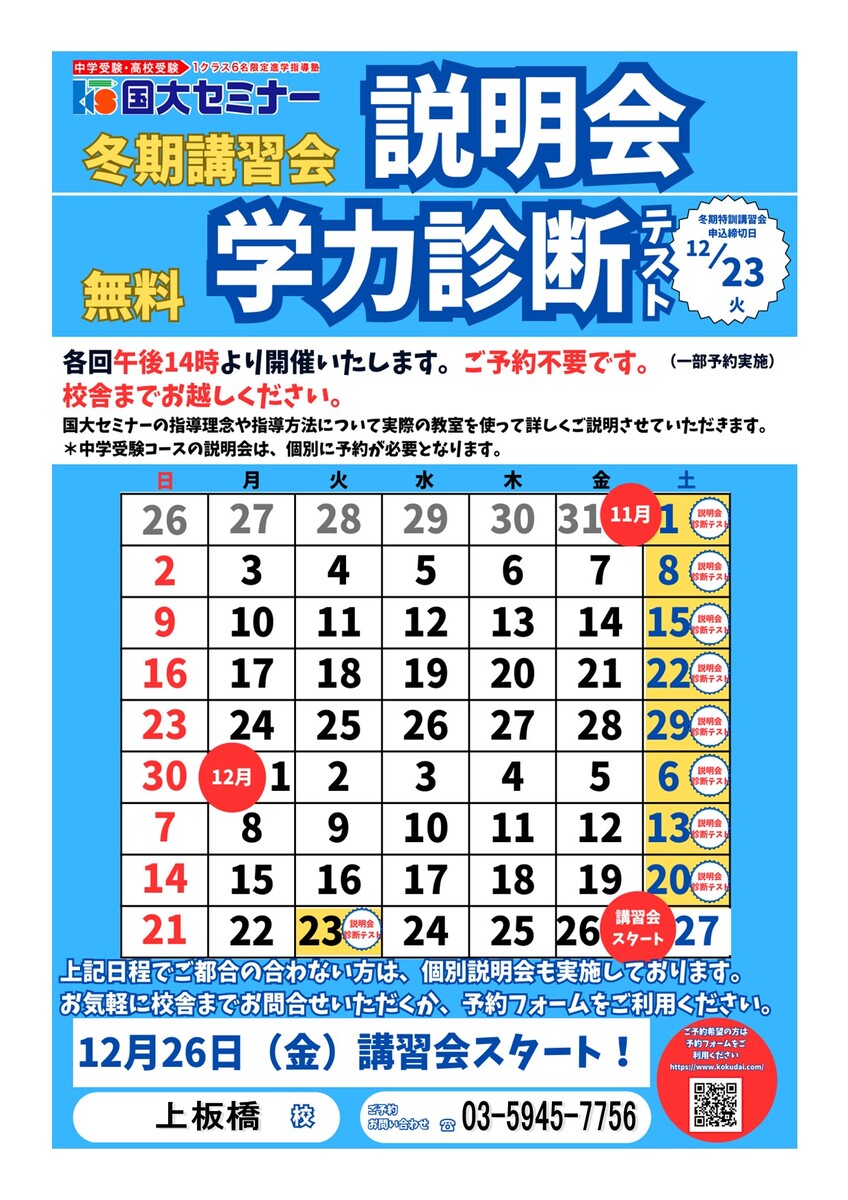 冬期講習会説明会日程!