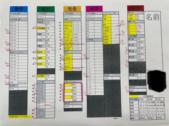 国大セミナー川越本部校では、中間テストが終わったと同時に北辰テスト対策がスタートしています。11月の北辰テストは、定期テストにかぶりにくいため力を入れやすい回です。一方で、定期テストが終わって安心し、何もしていないと極端に偏差値が下がってしまいます。夏期講習会で学習した内容の総復習をする大事な時期になります。