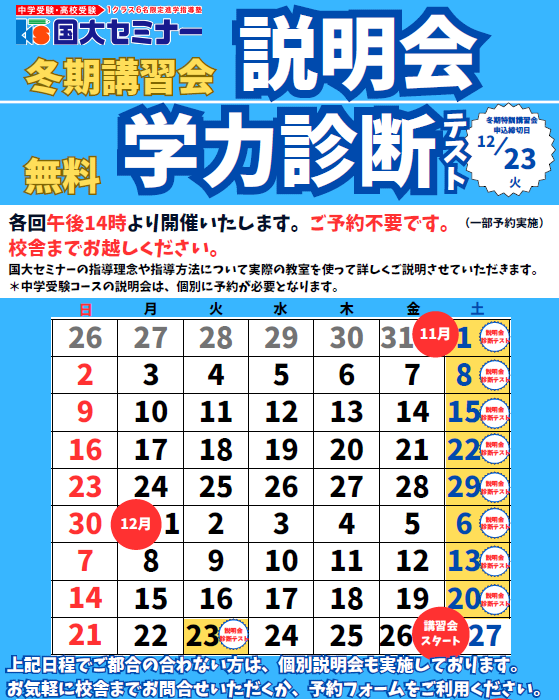 国大セミナーの冬期講習会は、