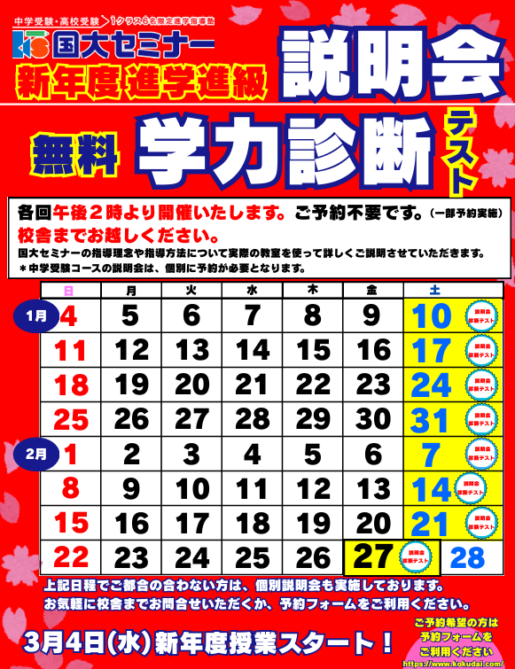 ぜひ国大セミナーの期末テスト対策を受けてください!