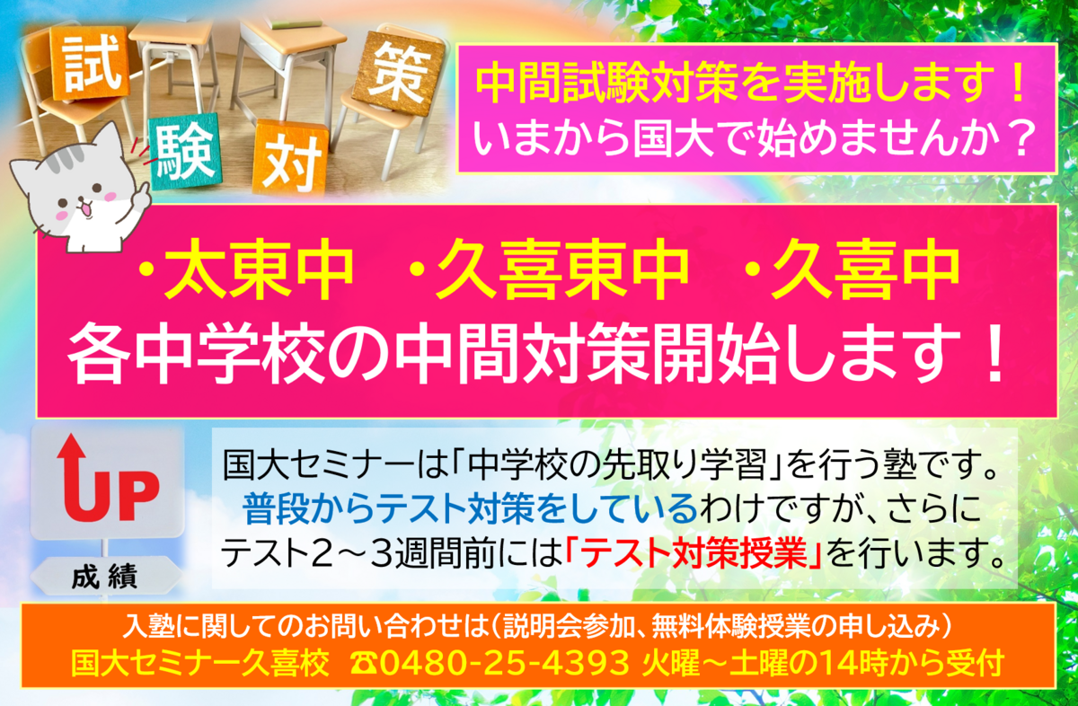 国大セミナーではまもなく期末テストの対策をスタートします!