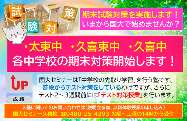 そんな中、国大セミナーではそろそろ学年末試験対策がスタートとなります。