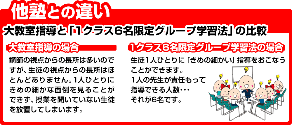 1クラス6人制グループ学習の国大セミナーです!他にはない、独自の授業スタイルによって生徒1人ひとりの個性・能力開発・ヤル気を輝かせ、今まで「見たこともない自分」に変わっていく体験を一緒にしませんか!?