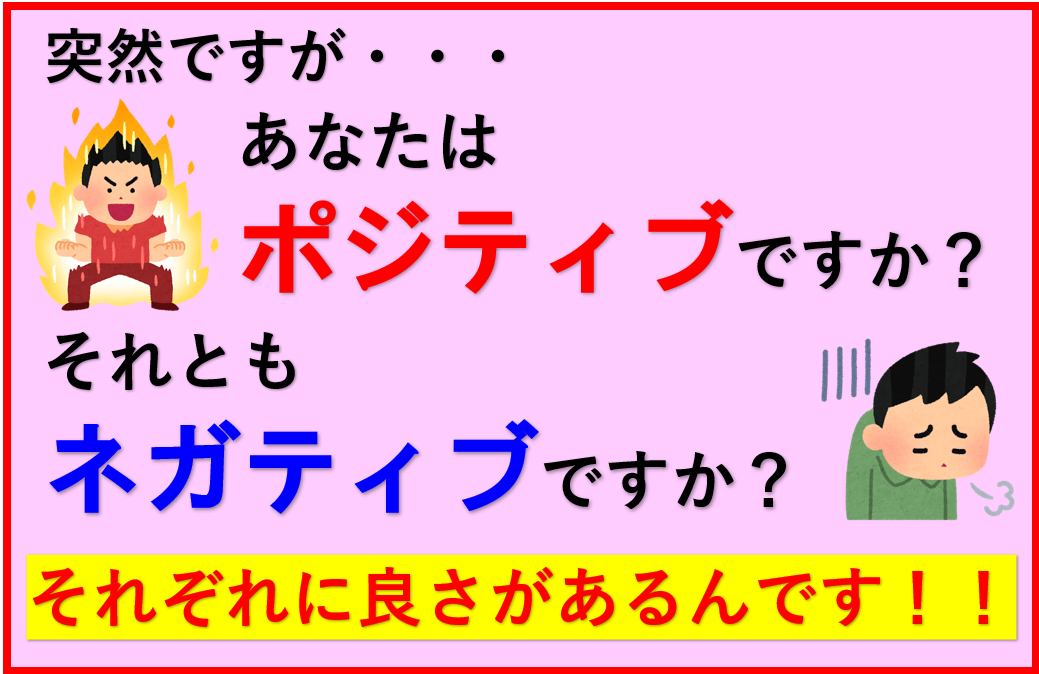突然ですが、あたなはポジティブですか?それともネガティブですか?