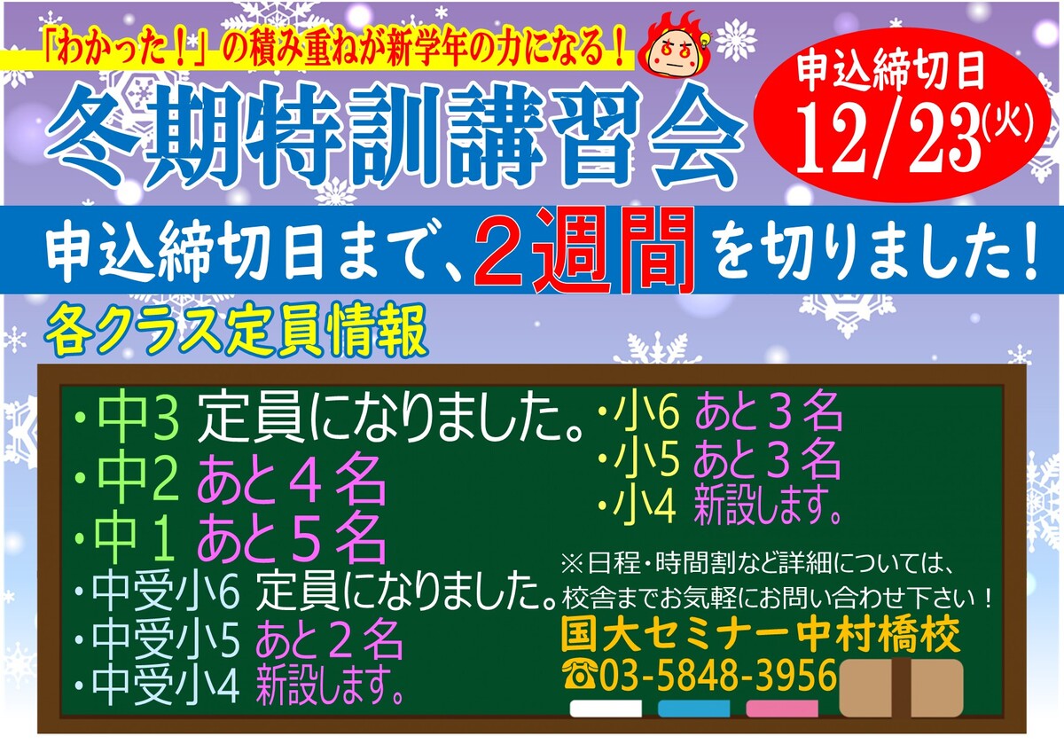 冬期講習会が開講する12/26(金)まで1ヶ月を切りました。