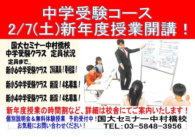 是非国大セミナー中村橋校をよろしくお願いいたします!