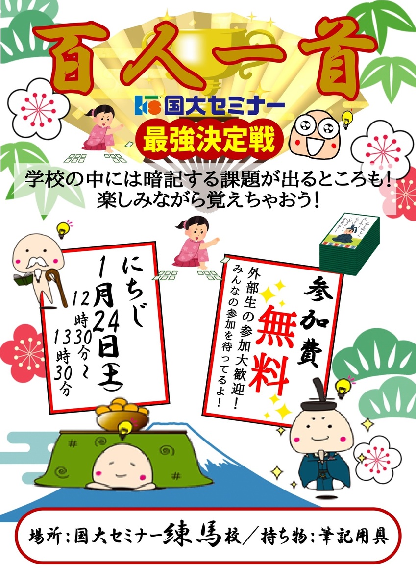 1月24日(土)に、【百人一首 最強決定戦】を開催いたします。