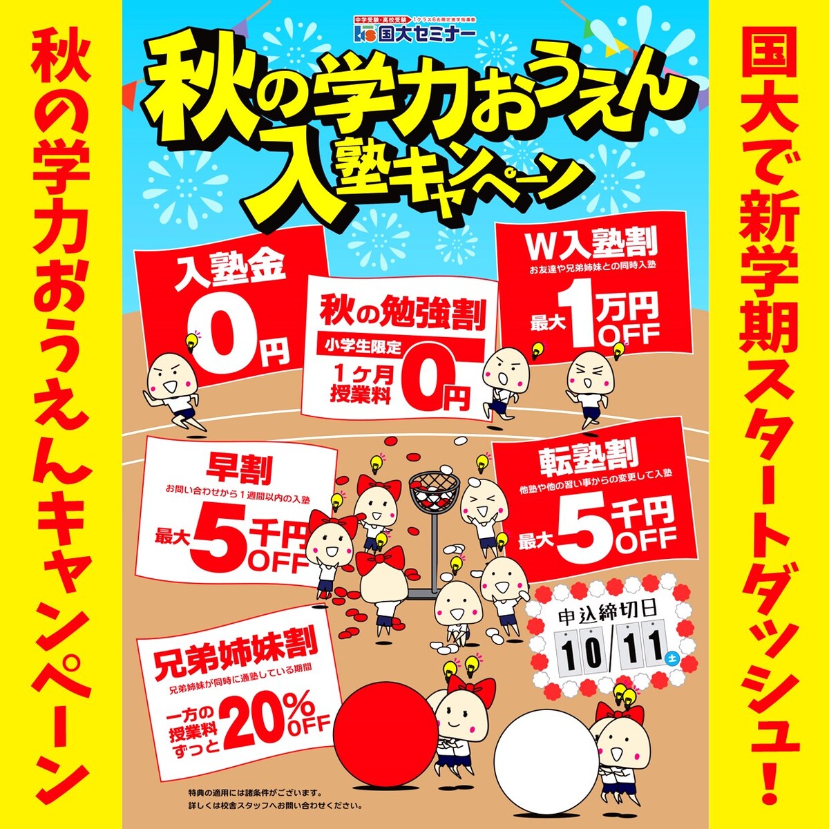 国大セミナー練馬春日校では11月1日(土)から、毎週土曜日14時より
