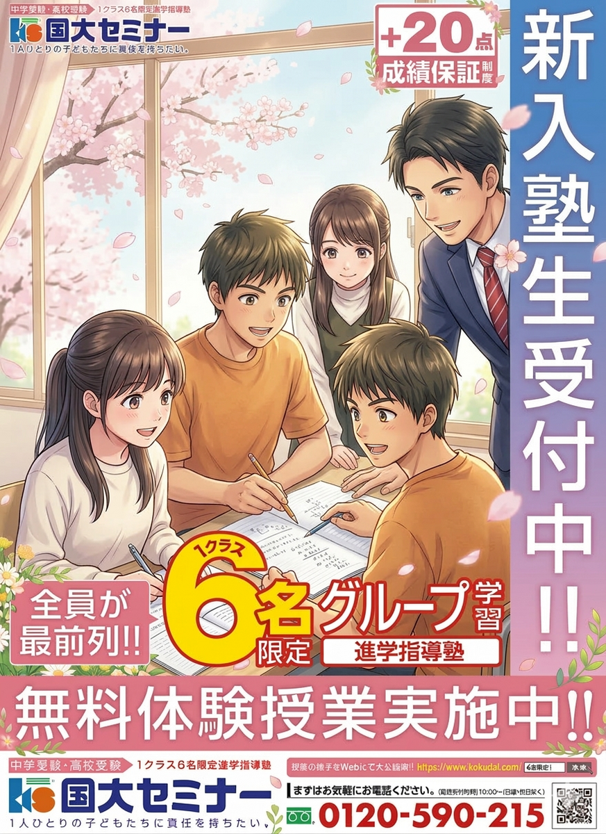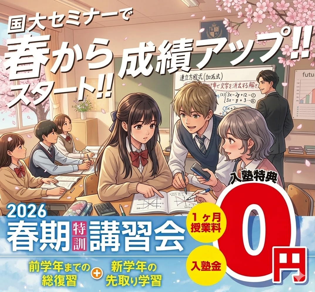以下の日程で、体験授業を実施しておりますので、ぜひ、国大セミナー