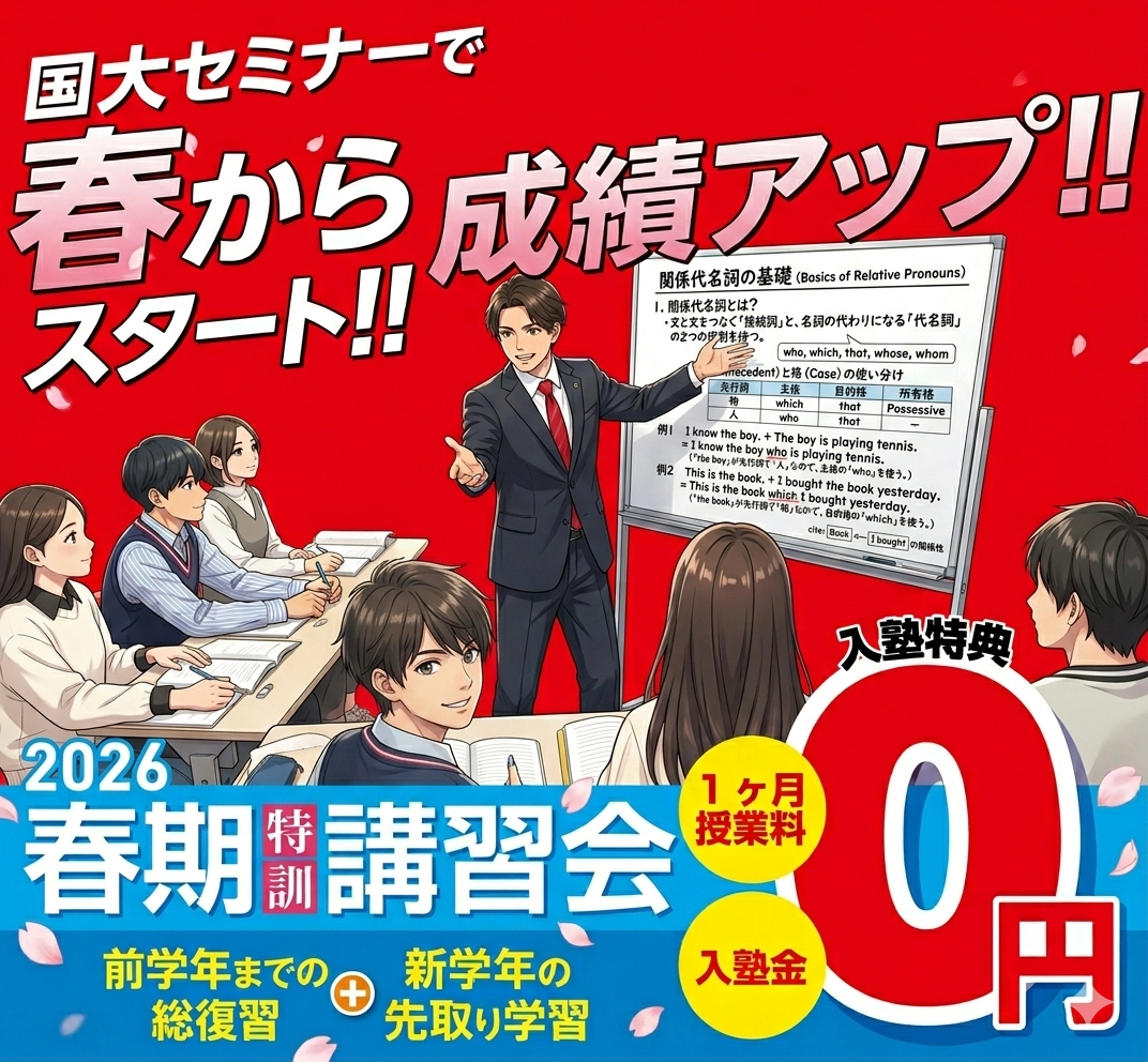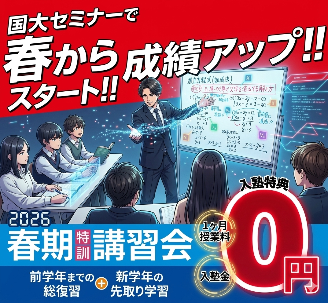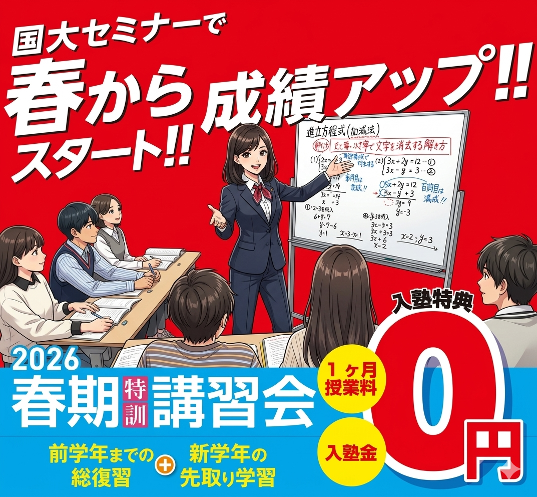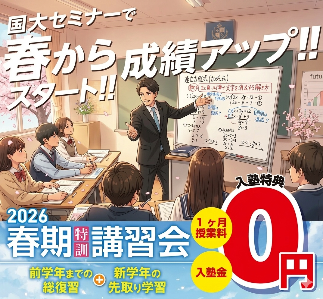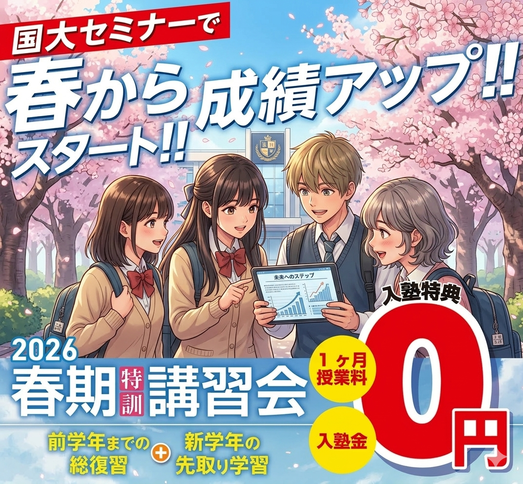 さて、国大セミナーでは夏期特訓講習会申込受付を開始いたしました。