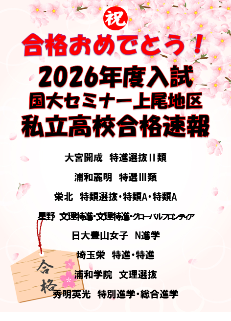 国大セミナー西上尾校 048-726-8191 担当:松野下