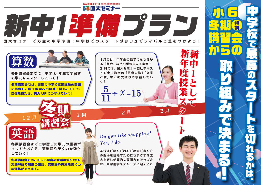 現在、国大セミナー西糀谷校では冬期講習会の受講生を募集しております。