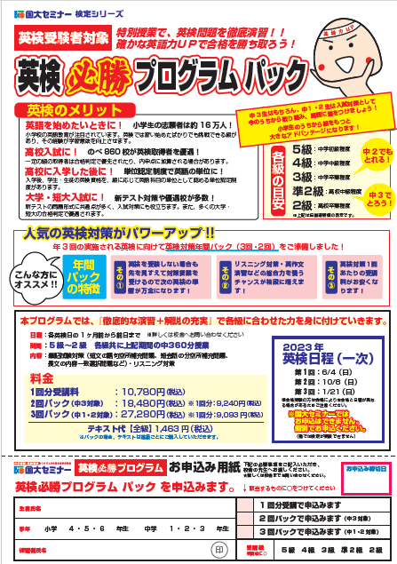 国大セミナー大泉学園通り校では12月から英検対策講座を開講します。