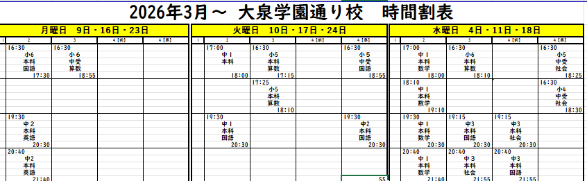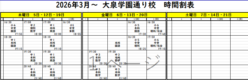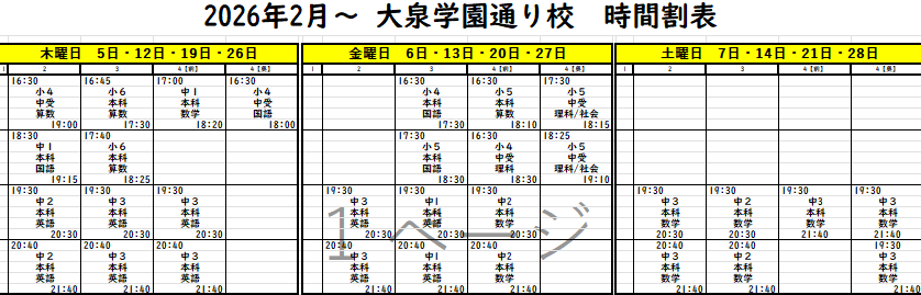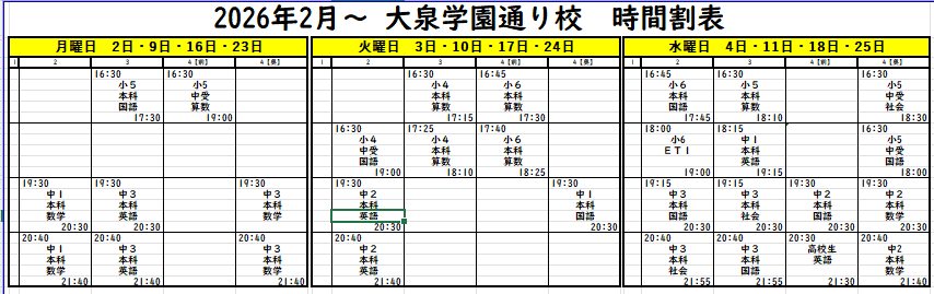下記添付の時間割も併せてご参照ください。