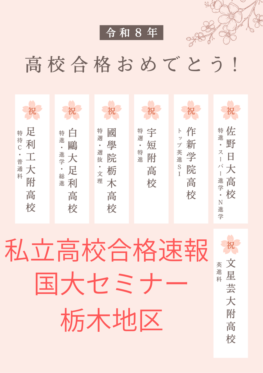 はじめまして、国大セミナー小山校です。