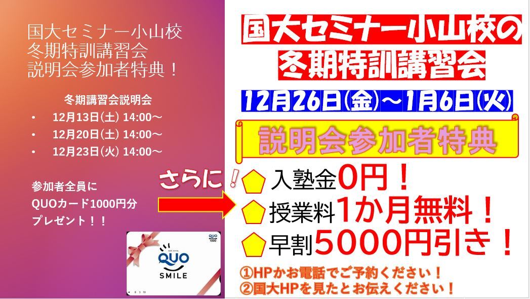 さて、国大セミナーでは春期特訓講習会の受付がスタートしました。