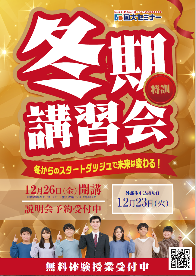冬期講習申込開始!内申、偏差値UPするなら国大セミナー!