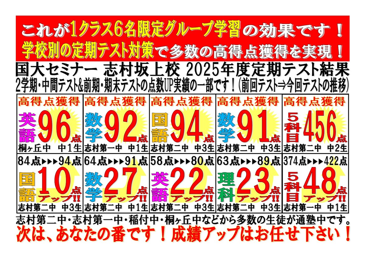 国大セミナー志村坂上校 1学期・中間テスト結果発表!