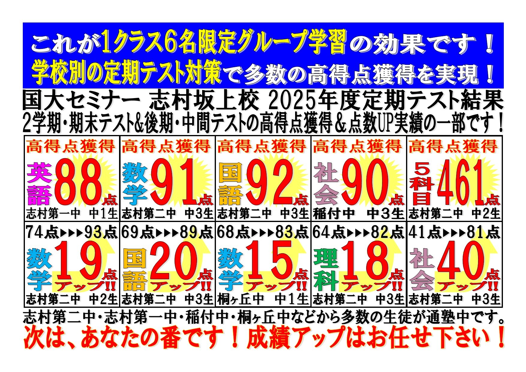 国大セミナー志村坂上校 2学期・期末&後期・中間テスト結果発表!