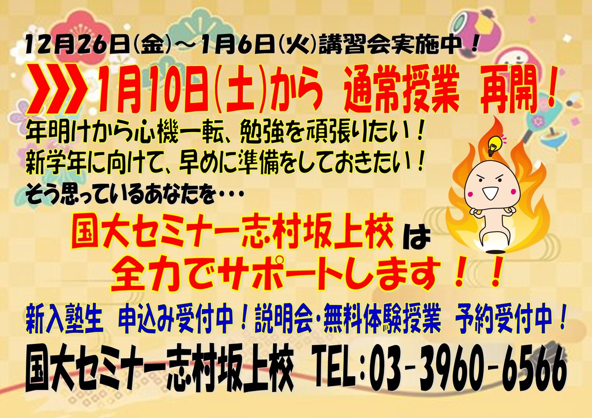 1月10日(土)から通常授業再開!
