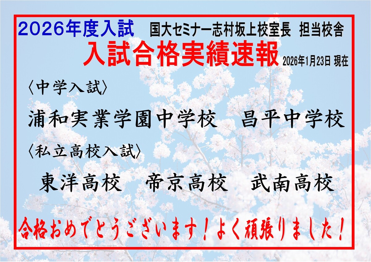 国大セミナー志村坂上校 TEL:03-3960-6566