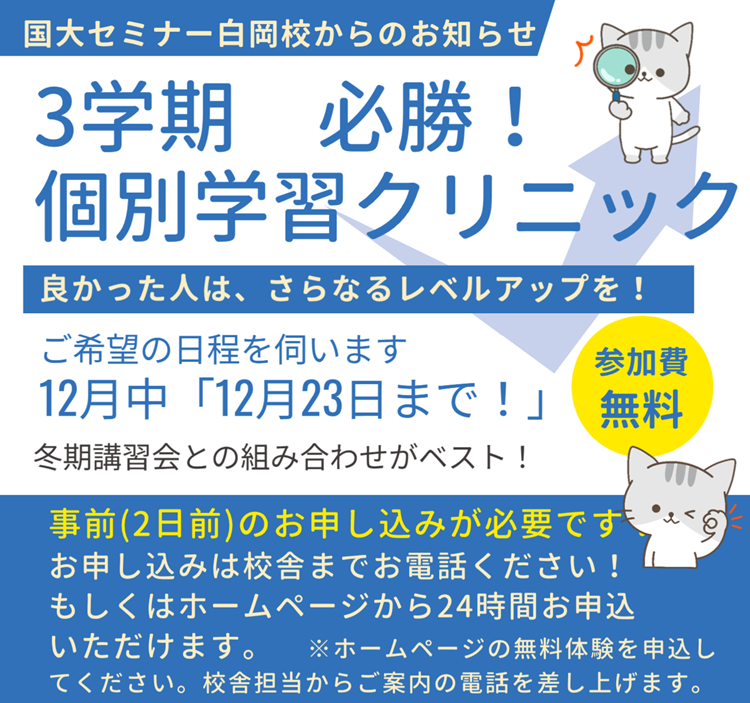 そろそろ塾をとお考えの方、冬期講習からのスタートでも区切りはいいですが、