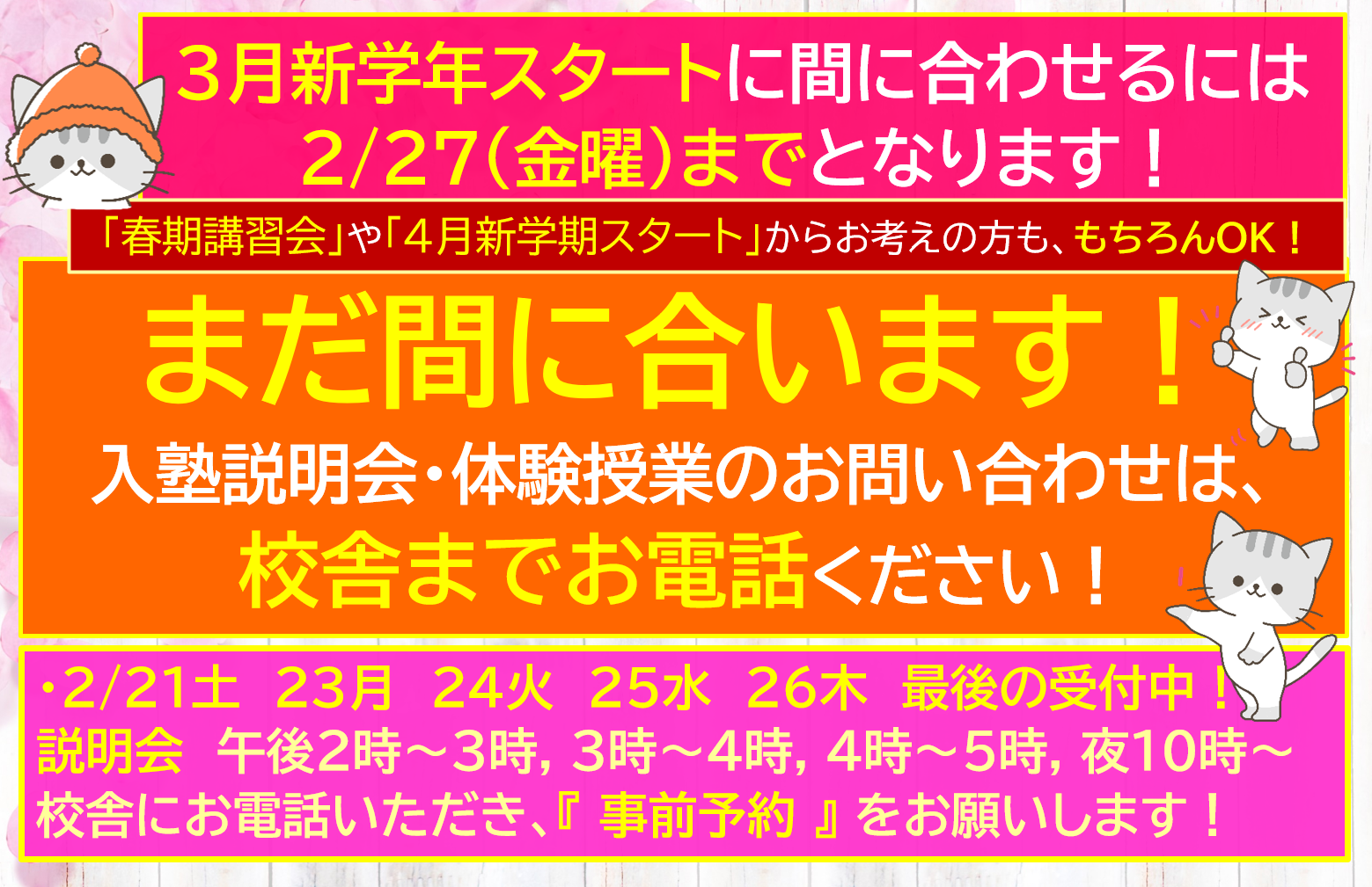 3/2(木)新年度の授業開始!お急ぎください!!