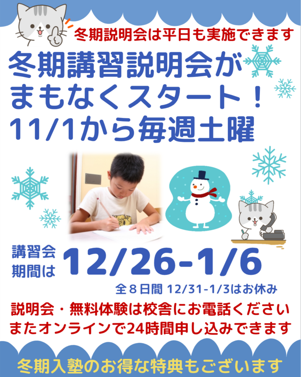 2025/10/24冬期講習会・ご入塾をお考えの皆様へ