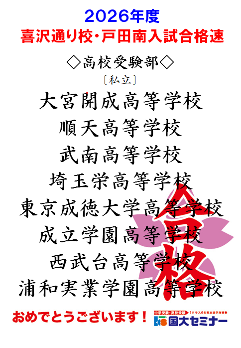 国大セミナー戸田南校は、これからも生徒一人ひとりの挑戦と成長を全力で支えていきます。受験生の皆さん、本当にお疲れさまでした。