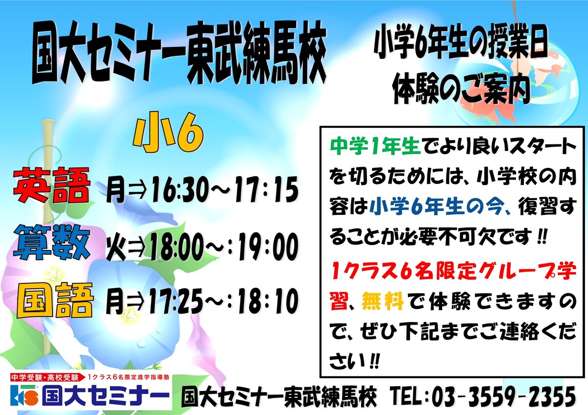 たくさんの小6生と校舎でお会いできるのを楽しみにしています!