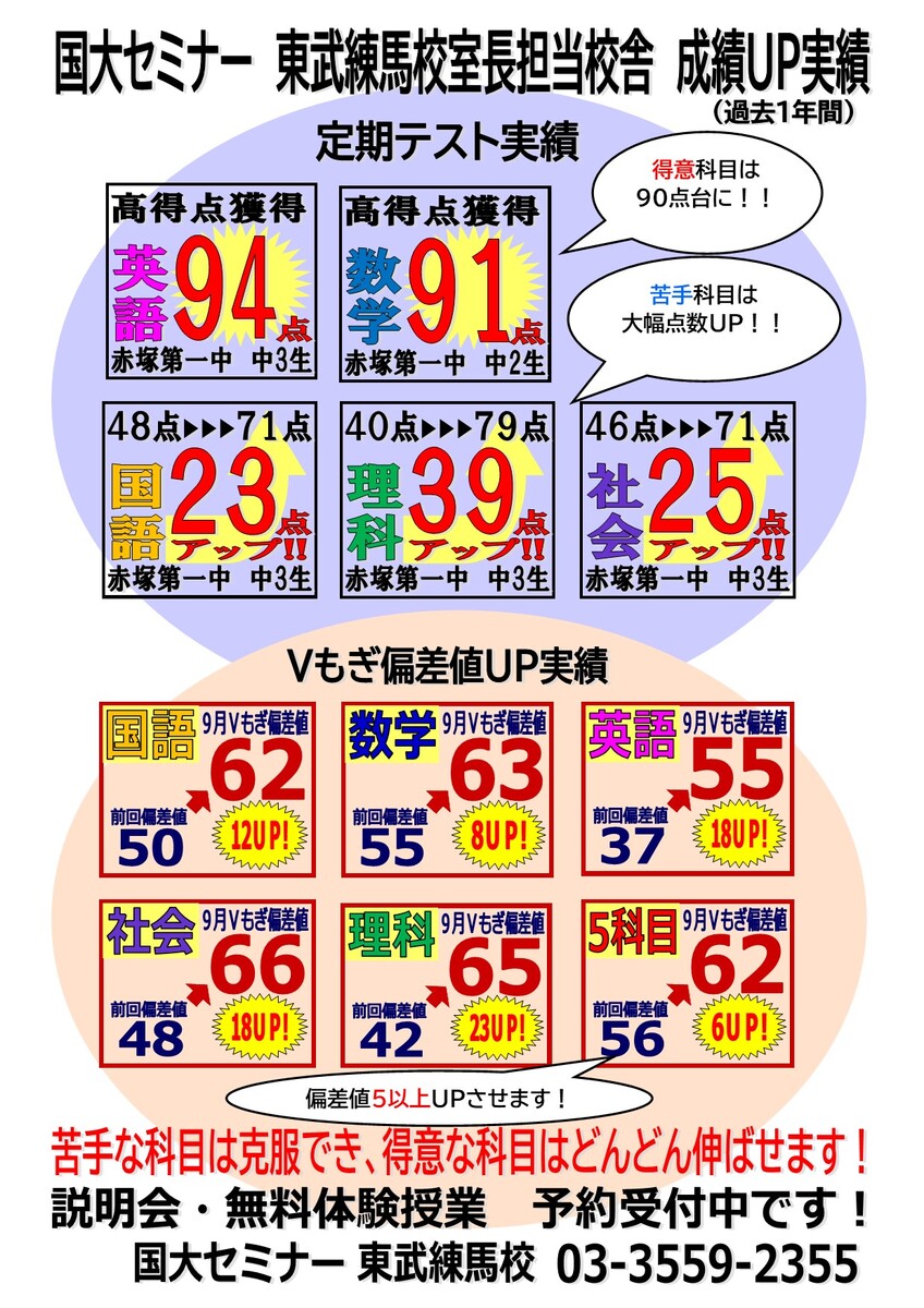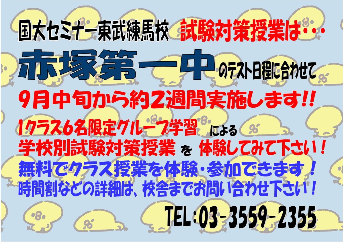 #板橋区 #練馬 #東武練馬 #下赤塚 #東武練馬駅 #下赤塚駅 #地下鉄赤塚駅 #学習塾 #個別指導塾 #定期テスト対策 #模試対策 #入試対策 #赤塚第一中学校 #西台中学校 #北町中学校