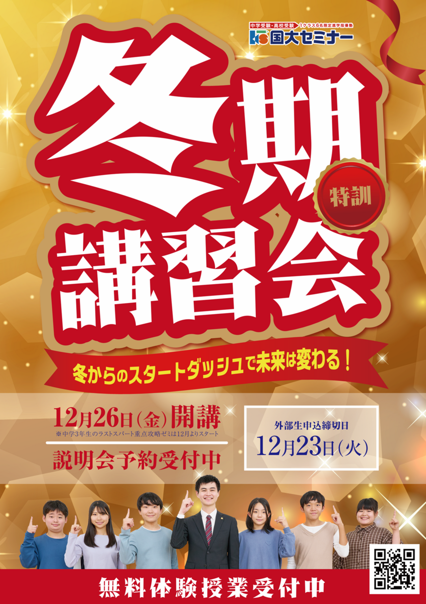 この冬、国大セミナーの冬期講習会で苦手分野を私たちと一緒に克服しましょう!