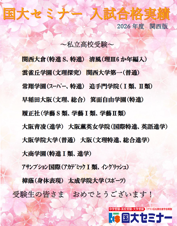 2026国大セミナー私国立高校入試結果