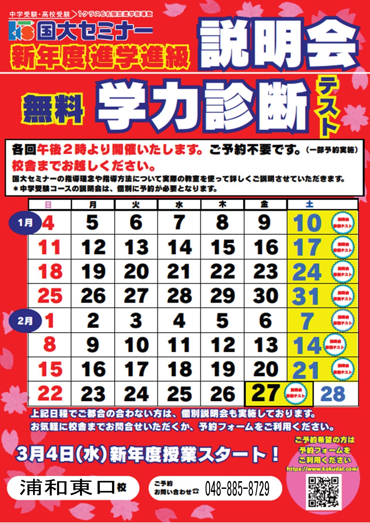 新学年への不安を、ワクワクに変えませんか? 国大セミナー浦和東口校では、春期講習の詳細や学習相談を随時受け付けております。