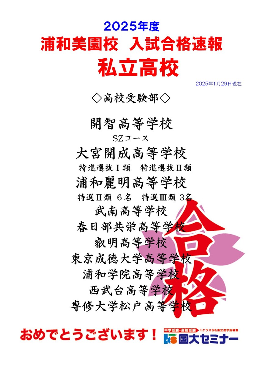 浦和美園校 合格実績