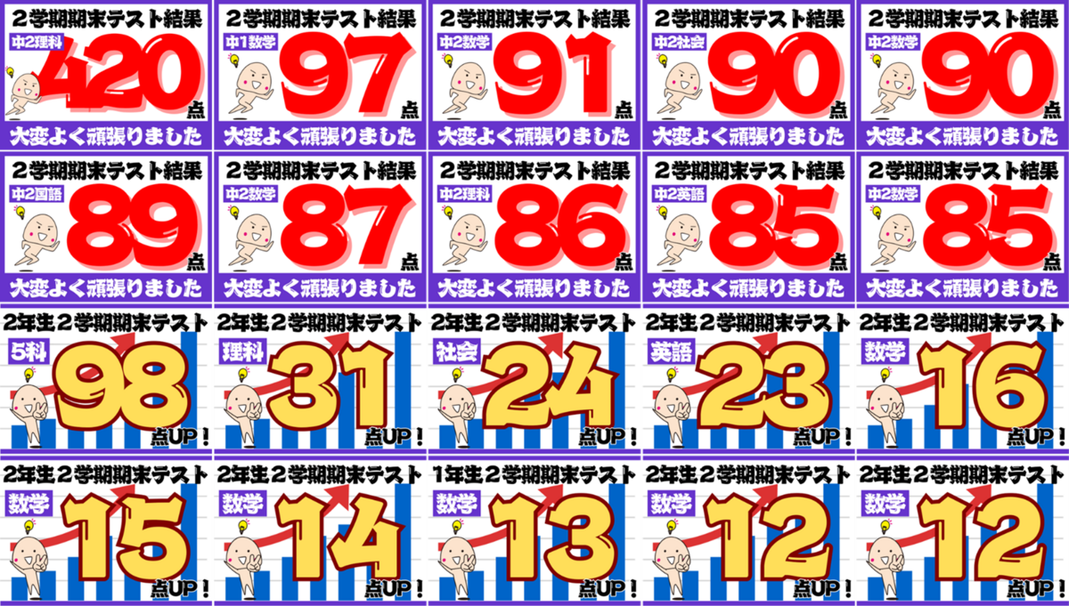 中学1年生・中学2年生の2学期期末テストの結果と成績UP実績が出そろいました!