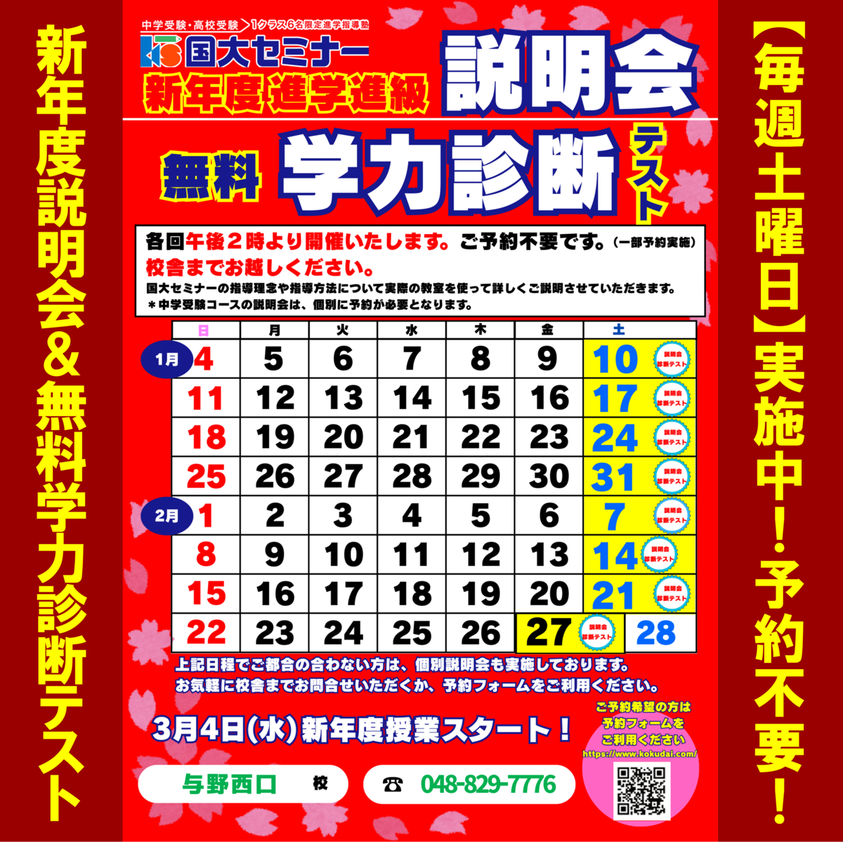 与野駅西口の少人数制塾|3学期スタート&受験・定期テスト対策なら国大セミナー