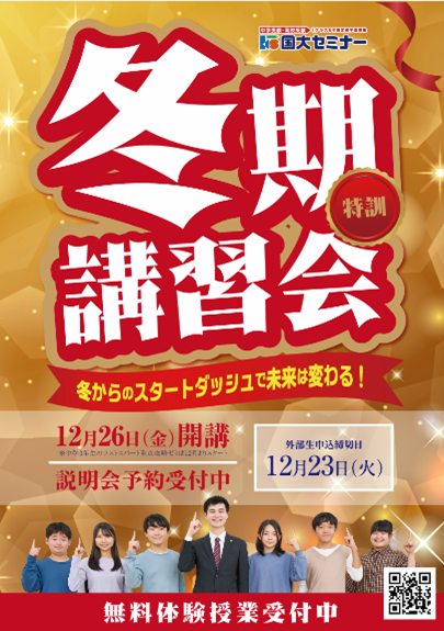 テスト対策に不安のある方はぜひ、1クラス6人までの少人数指導がウリの国大セミナーまでお問い合わせください!